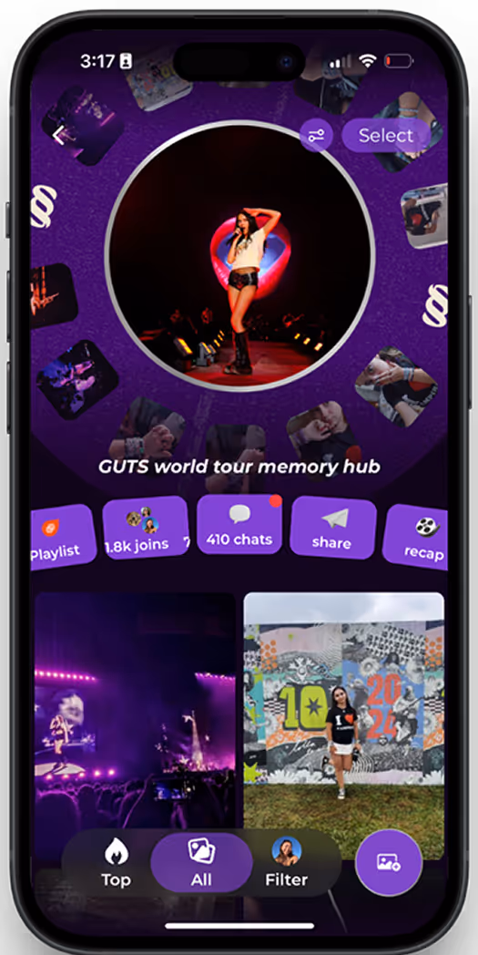 Rodrigo’s team utilized the swsh UGC for LiviesHQ socials, fueling fan engagement and hype around the end of the tour. The swsh album became the resource hub for LiviesHQ months after the initial push. At Lollapalooza, the team forgot to capture specific parts of a fan project and found the content later on swsh.
