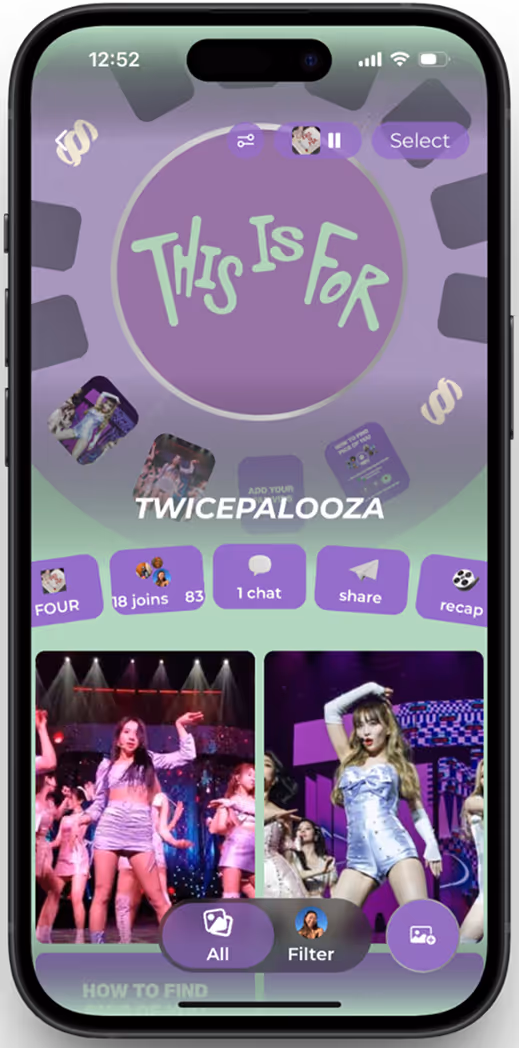 TWICE fans are using swsh for community: 1.3K+ chat messages about content shared, sharing their love for TWICE, and their overall excitement for Lollapalooza.